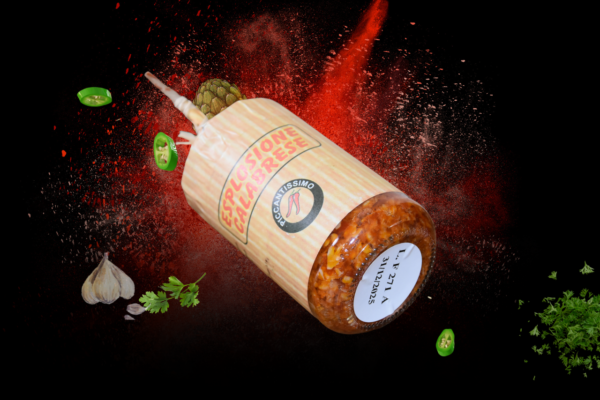 Paté piccante realizzato con i migliori peperoncini calabresi, ribattezzato Esplosione Calabrese. Questo prodotto stuzzicante viene realizzato con un misto di verdure, funghi, melanzane grigliate, dell’ottimo olio di oliva e soprattutto con il re della cucina calabrese: il peperoncino.